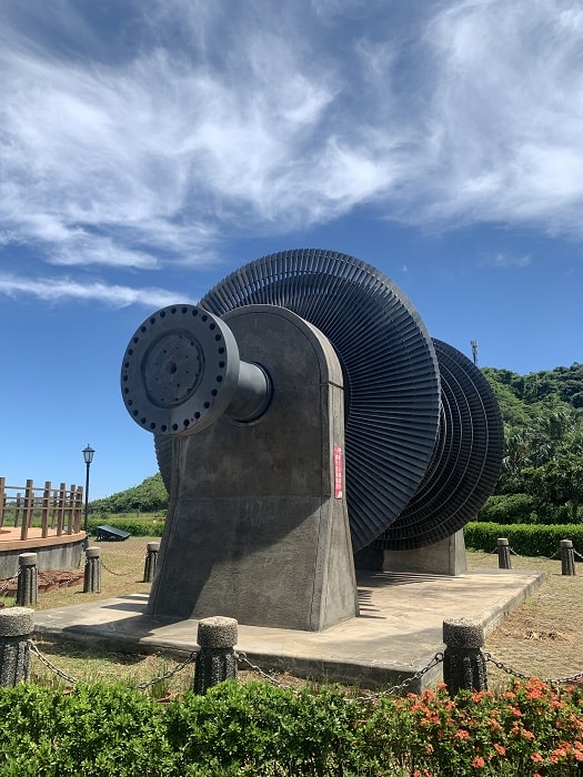 這座低壓汽輪機轉子曾經為台灣帶來寶貴電力後,如今已退役,高傲地矗立在藍天之下,成為展示館的鎮館之寶。