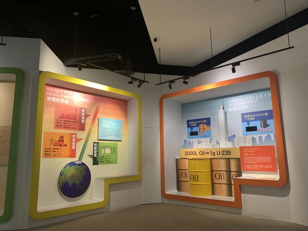 展示館的牆面上都有大型圖表搭配模型或實物展示,以圖文方式深入淺出讓遊客容易了解核能的知識。