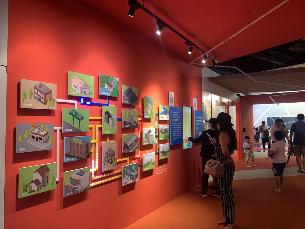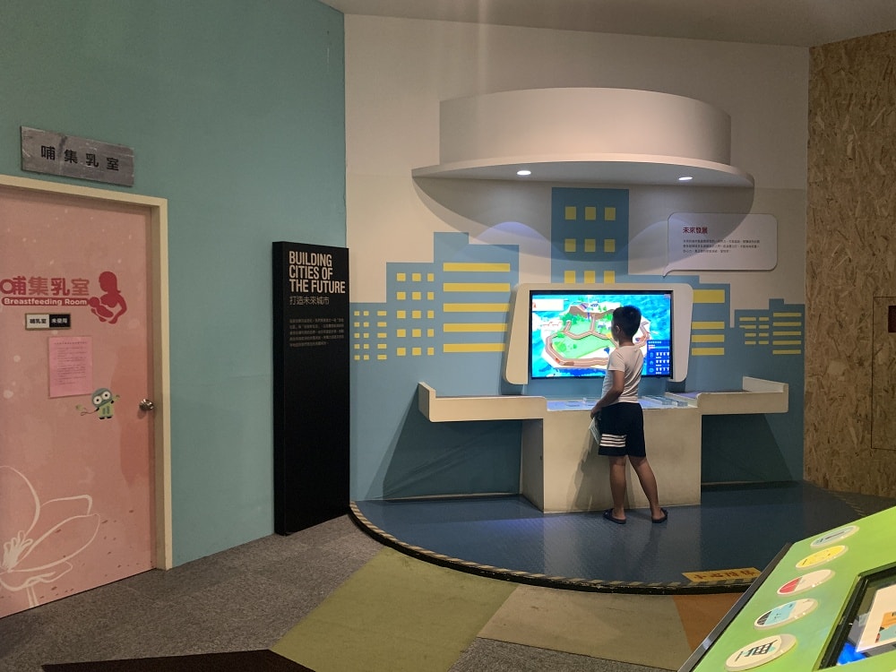 「打造未來城市」,不同的壓克力版代表一個設施,每個設施需要的電力和排放的二氧化碳不同,讓小孩自行決定要蓋哪些設備。