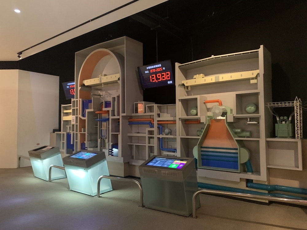 定期搭配聲光影音,兩側的螢幕會撥放核能發電的原理與過程,同時反應爐的各部位會對照影片內容變換色彩及模擬發電流程,讓遊客更容易理解展示內容。