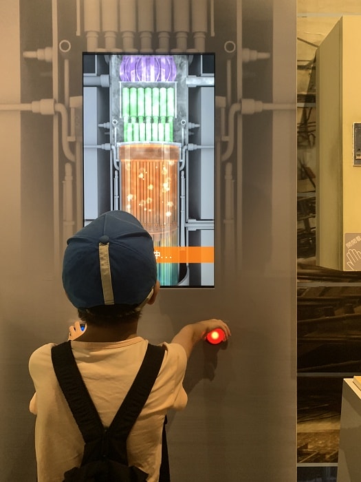 接著來到「核能發電廠的構造」,這裡是核電廠的細部模型,介紹反應爐產生熱量的流程。
