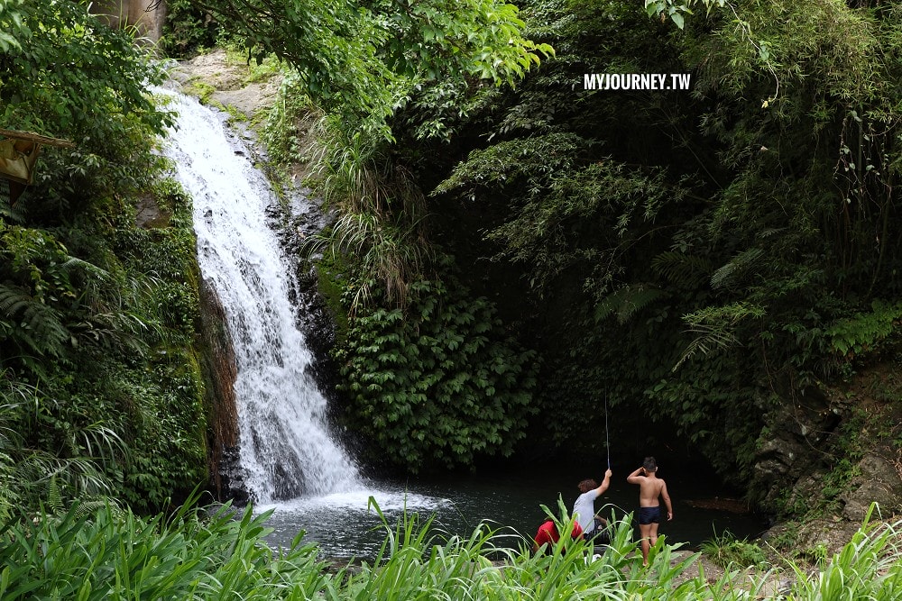 新竹玩水景點推薦,位於新竹橫山的「豐鄉瀑布」免收費,有停車場,走下階梯就能玩水,不用爆汗爬山相當親子友善。