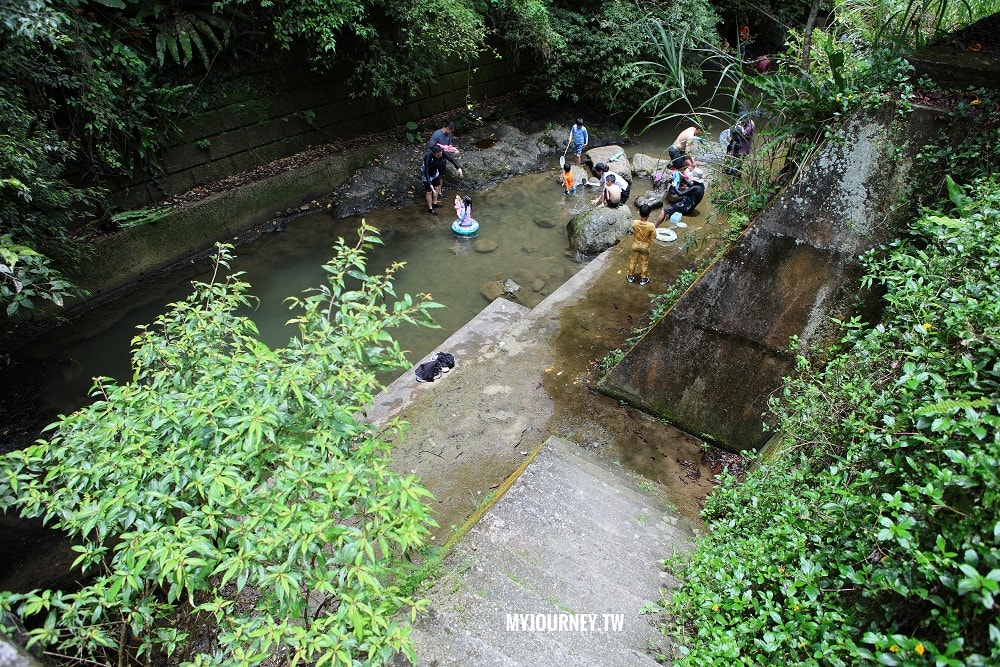 走下階梯,從停好車不用3分鐘就能玩水,馬路旁的玩水秘境就是這樣方便,免爬山,不用爆汗,CP值超高。