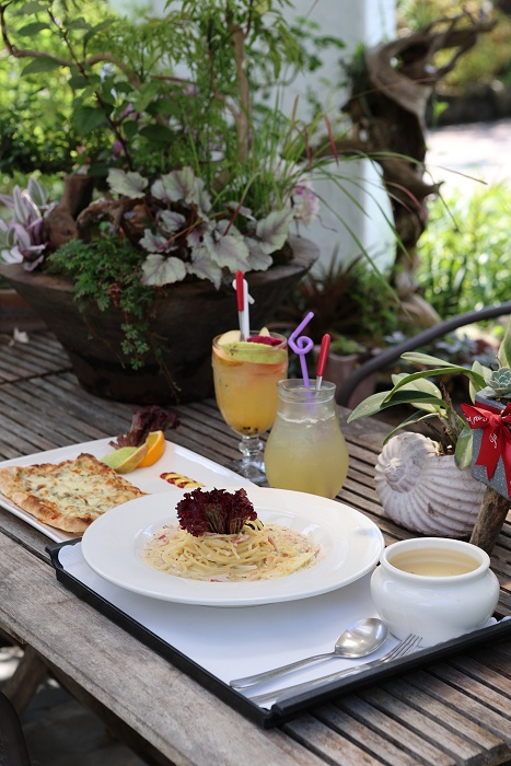 「綠海咖啡館」身為一個作園藝起家的,有幾把剪刀,把餐廳打理的綠意盎然也是很合理的。