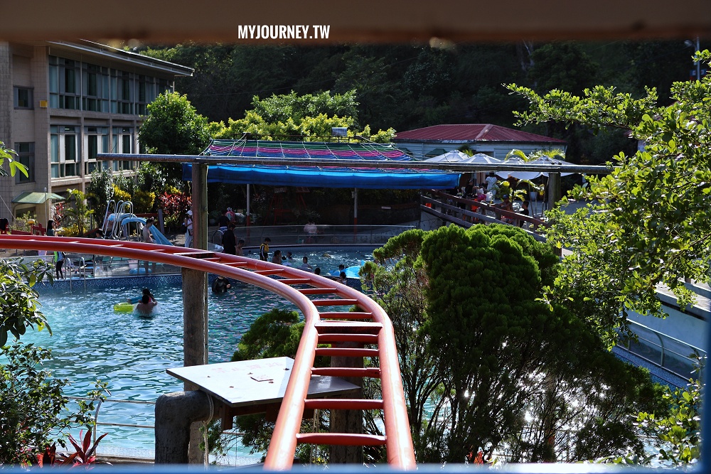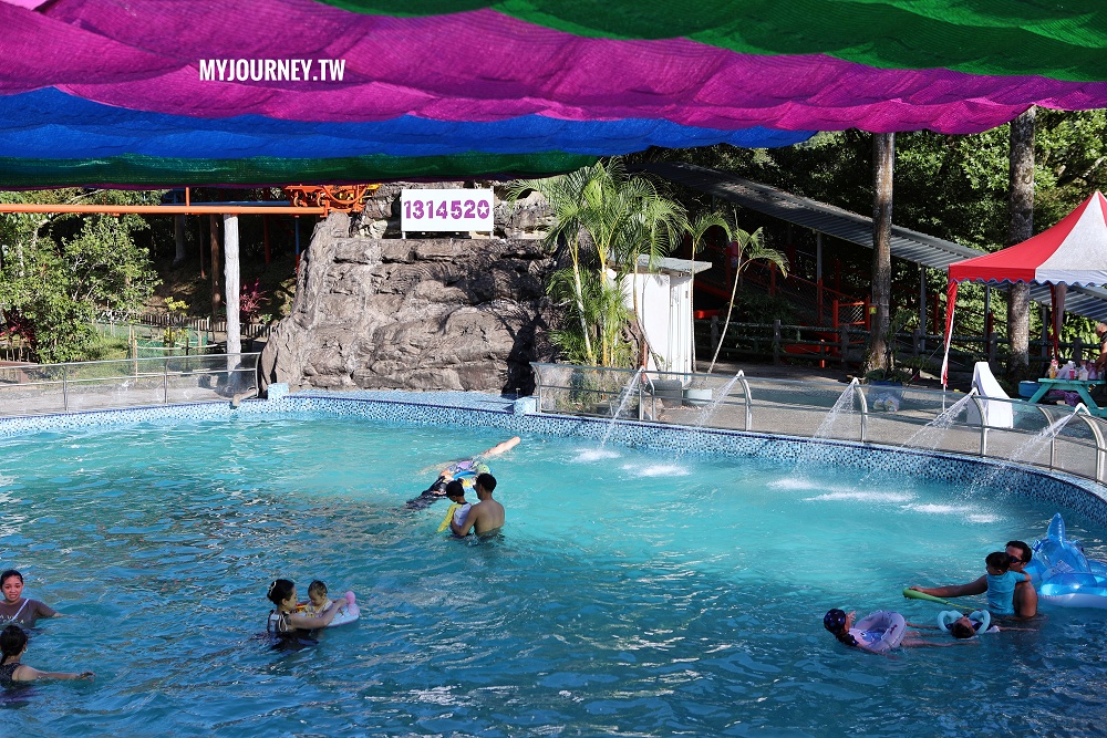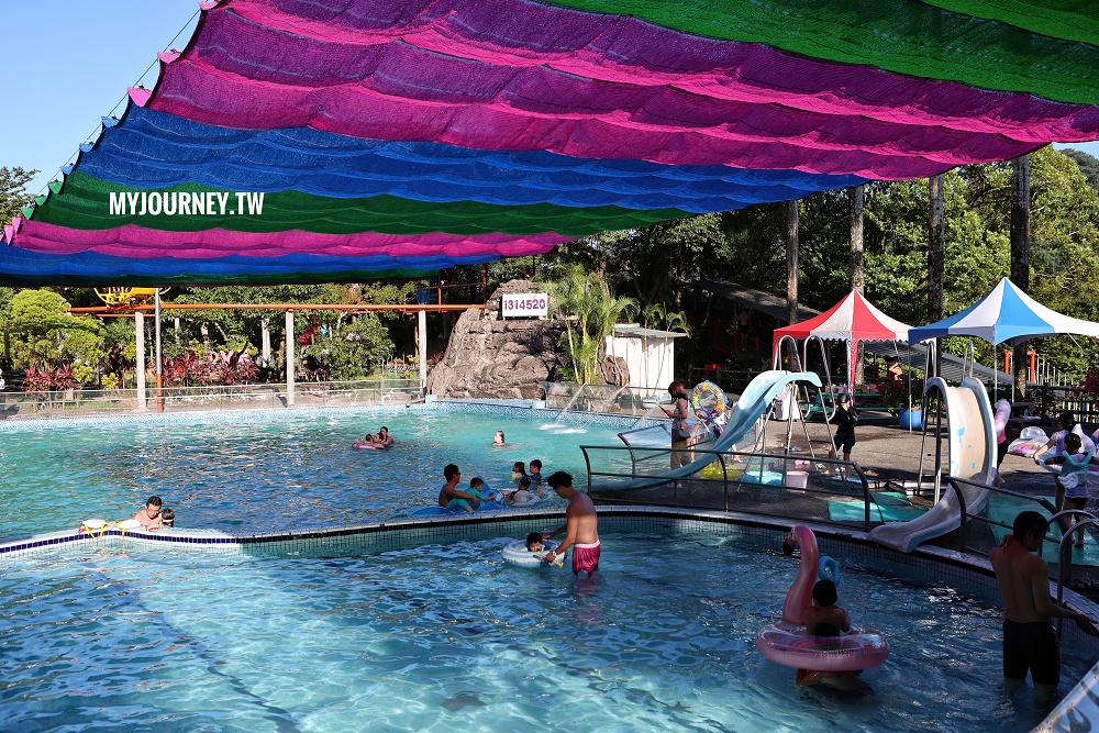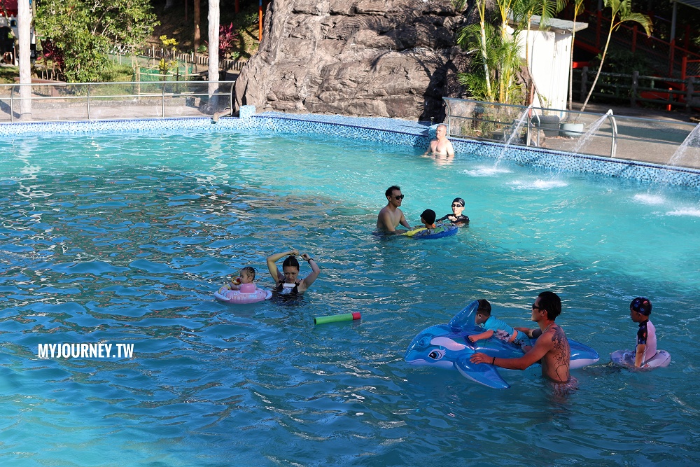 山泉水清涼透心,還分成親子池與SPA區,小孩玩滑水道玩到像海豹,爸媽則在旁邊泡水放空。