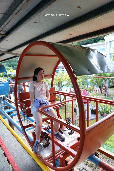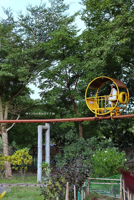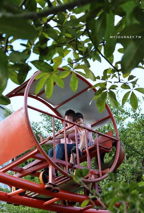 兩人一組,完全得靠雙腳踩才能前進,有一些高度,如果有懼高症的朋友可能會跨下癢癢的,但是別擔心,軌道很穩,從高處掠過樹梢,簡直小鳥鳥的視野。