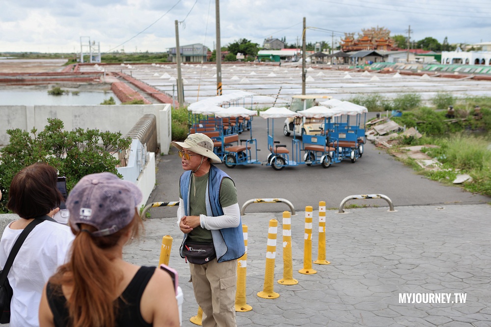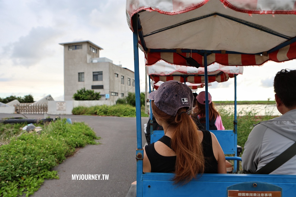 鹽田內設有免費小車車接駁服務,孩子坐在車上既好奇又興奮,從鹽田到堤防邊,一路上會有專人介紹鹽田歷史,完全沒有走馬看花的空虛感。