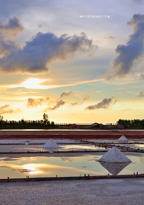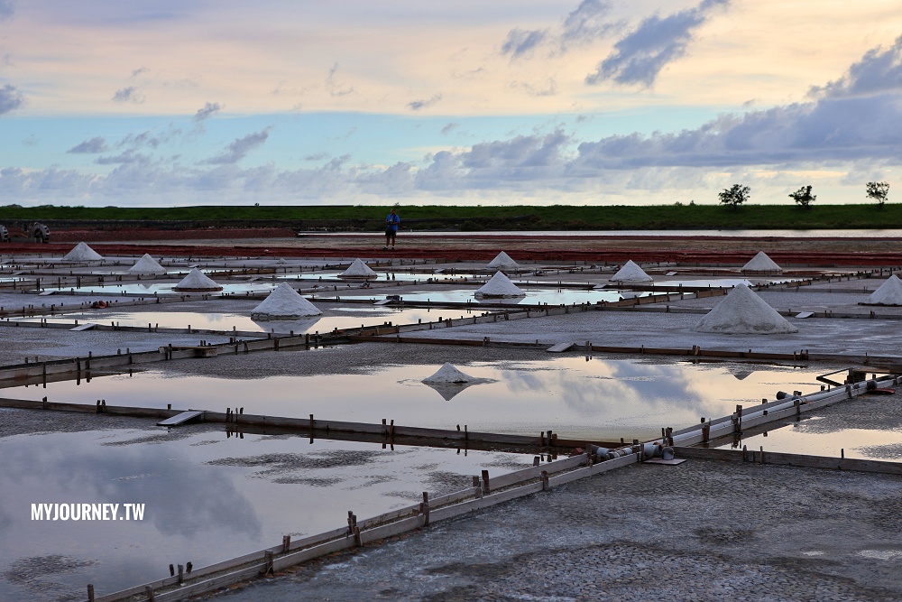 等到傍晚,夕陽撒落在平整的瓦盤上,整片鹽田就像一面巨大的鏡子,倒映著天空雲彩與金色陽光,真是拍照控的天堂。
