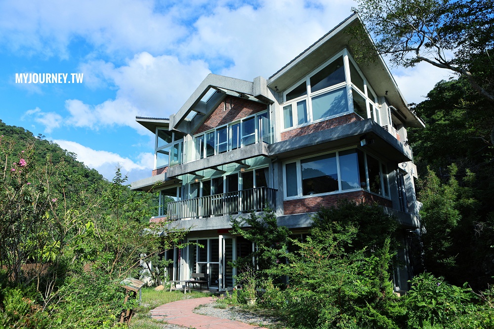 來到茶莊的入口人,可以看見二、三樓的用餐空間有大片的窗戶,被綠意簇擁的它看起來好優雅。