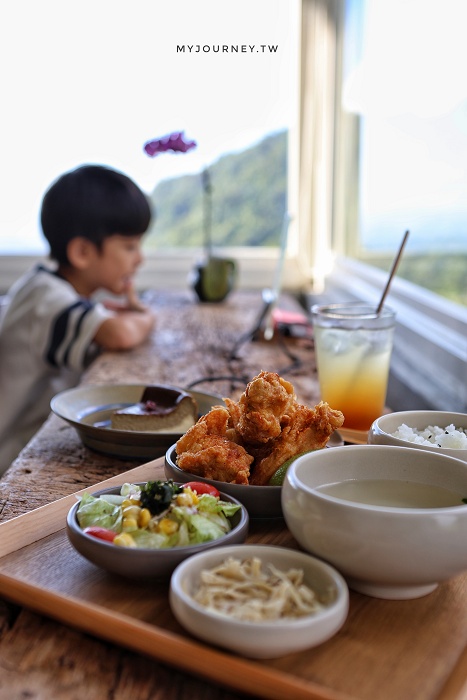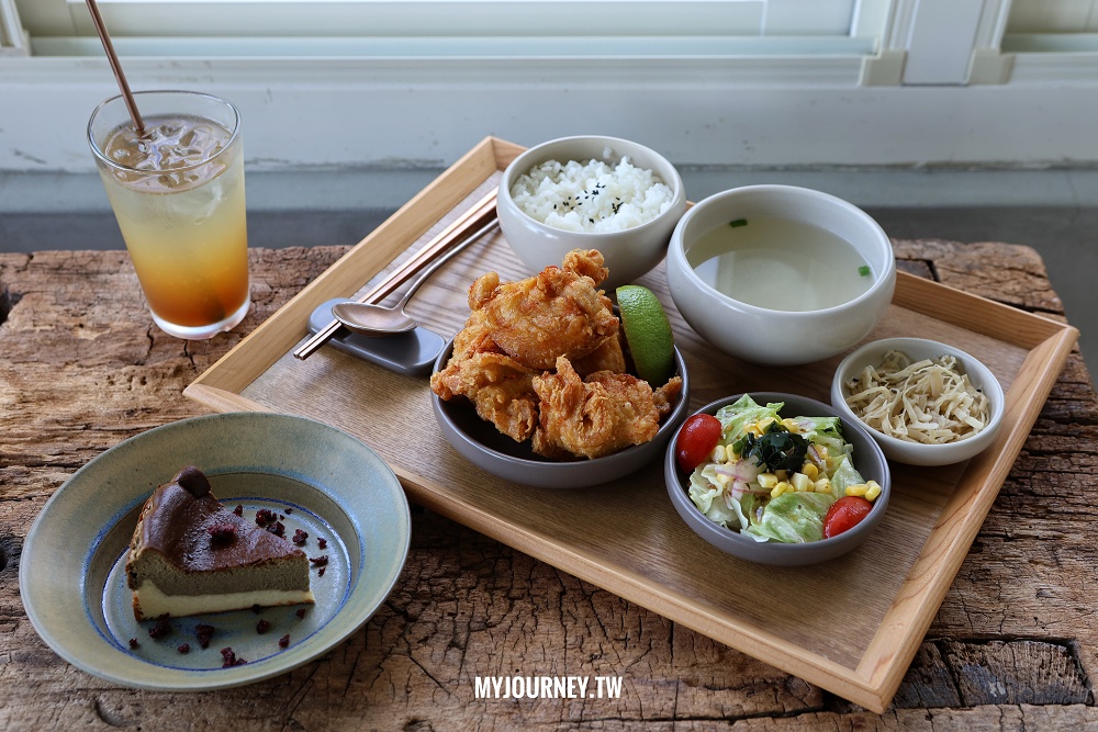 我個人喜歡這道唐揚雞,包含米飯、蘿蔔湯、沙拉等配菜,整齊排於托盤上,彷彿為網美們先擺盤,對著窗景就可以開拍。