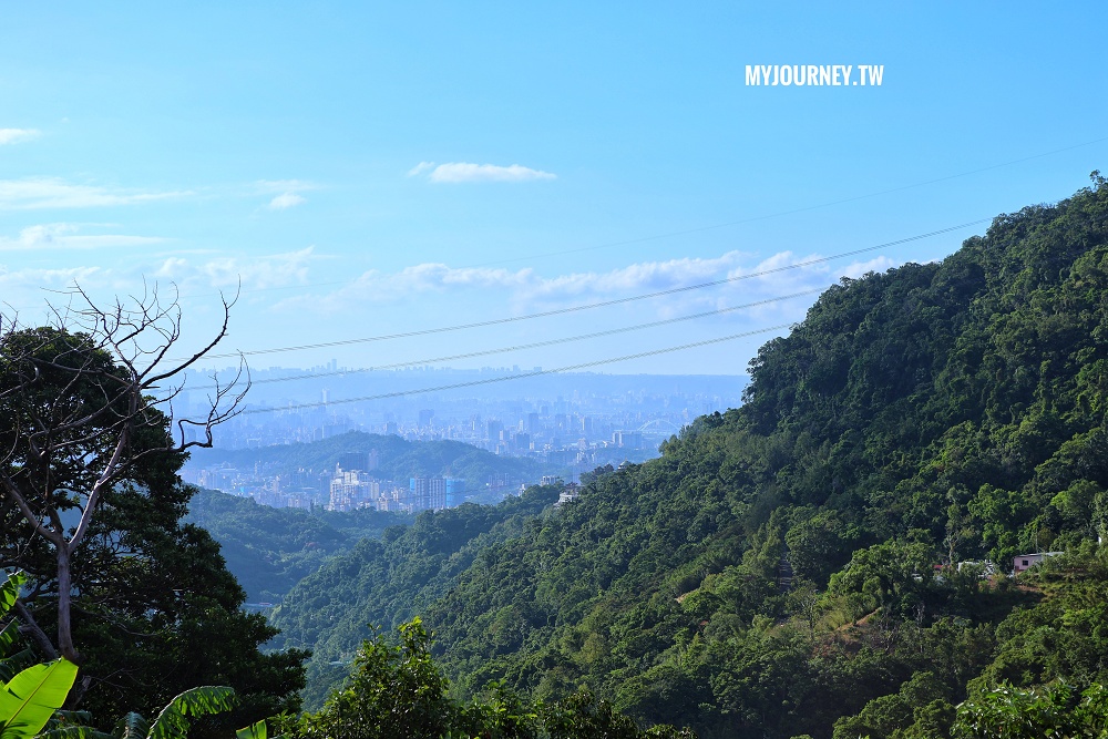外頭剛好是山凹處,所以可以看到台北市的景色,無遮蔽的視野在藍天的映襯下,是最簡單、最純粹的美。
